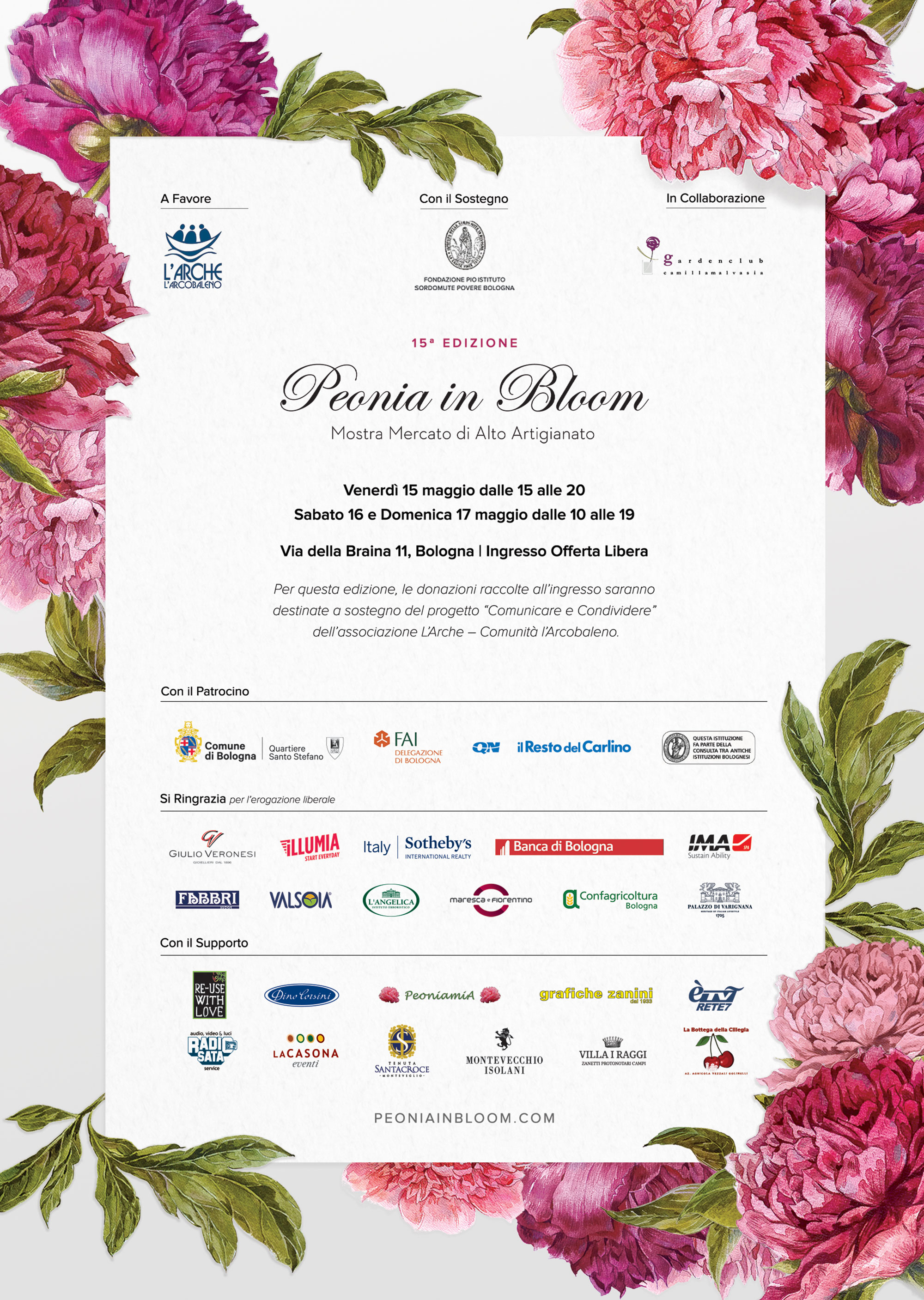 Banca di Bologna sostiene la 15° edizione di Peonia in Bloom, la Mostra Mercato di raccolta fondi a sostegno del progetto dell’Associazione Archè "Comunicare e Condividere", dedicato a persone con bisogni comunicativi complessi, alle loro famiglie e agli operatori scolastici e socio-sanitari che li affiancano.