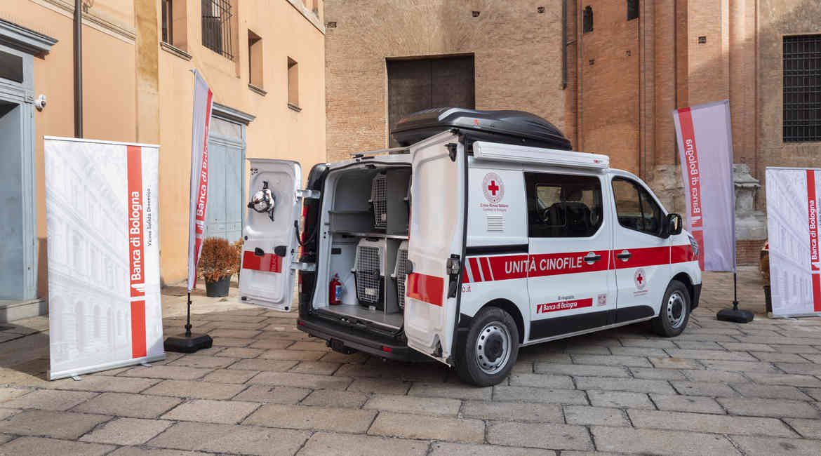 Martedì 24 settembre in piazza Galvani 4, di fronte alla sede della Banca di Bologna, il Presidente Enzo Mengoli e il Direttore Generale Alberto Ferrari hanno consegnato nelle mani del Presidente di Croce Rossa Italiana di Bologna - Marco Gamberini - le chiavi di due mezzi che supporteranno le attività di sostegno per i più fragili e di addestramento e ricerca dispersi da parte dell’unità cinofila. Il primo mezzo, un furgone refrigerato, verrà utilizzato per la raccolta di pasti in rimanenza presso le aziende di ristorazione alle mense, pasti confezionati in giornata che immediatamente verranno redistribuiti ad associazioni che svolgono l’opera caritatevole di assistenza ai bisognosi. Il secondo è un mezzo adatto al trasporto di quattro unità cinofile per la ricerca di persone disperse.
